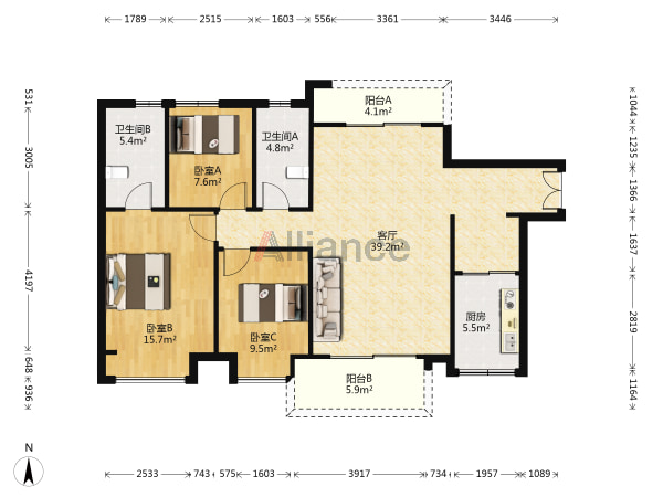 ◆户型:3房2厅2卫
