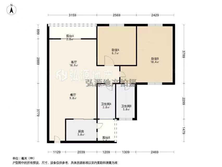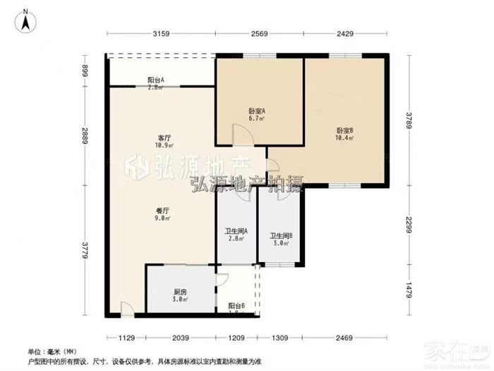 户型:3室2厅2卫