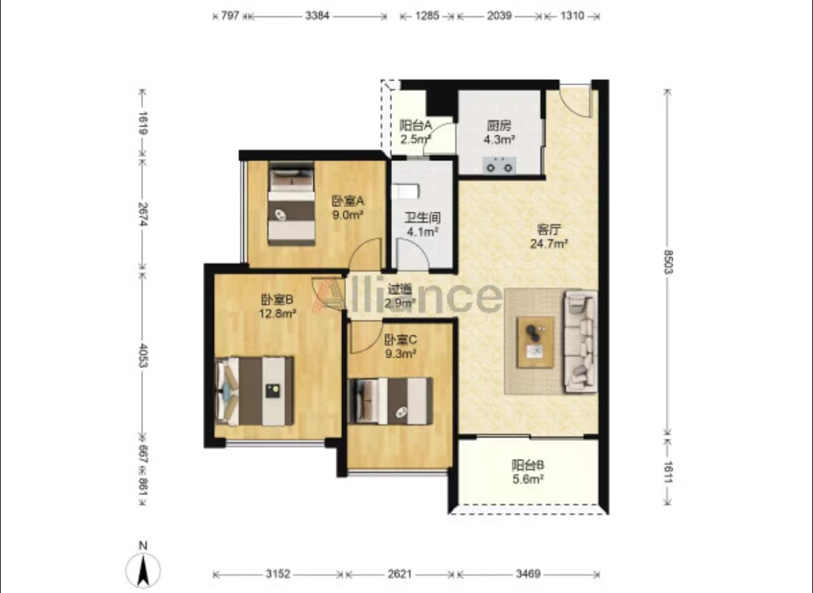 建筑新规的影响额外面积受限,100㎡以下户型房间尺寸相对不是很足,但档次和舒适度有所提升。