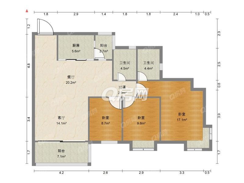 9、滨海之窗,朝南3房,107平米,17xx万