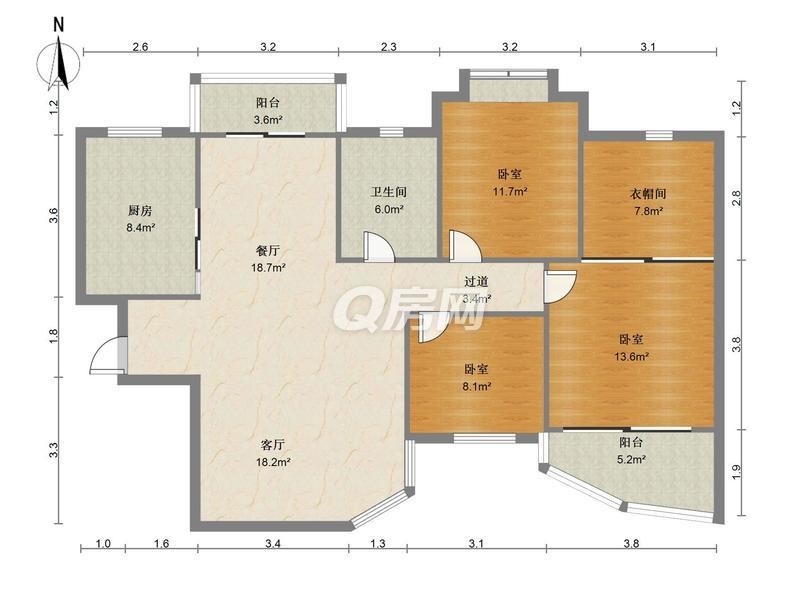 98平!三房!总价!1100万!南向!带个大平台!