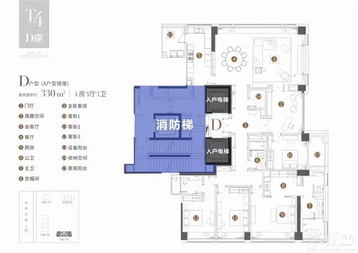 面积:329.92平米,总价:3407万