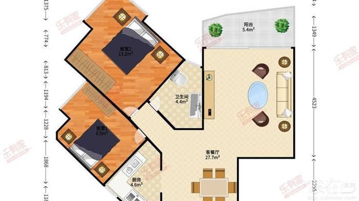 建面:75平方,3房