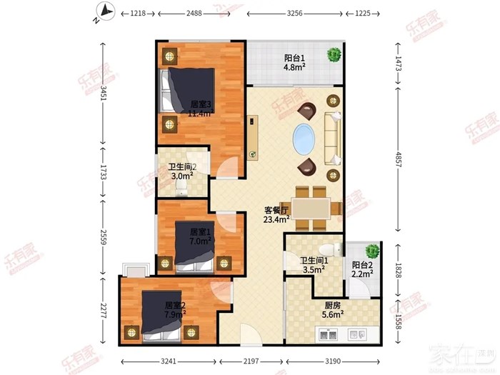 【户型】:3房2厅2卫