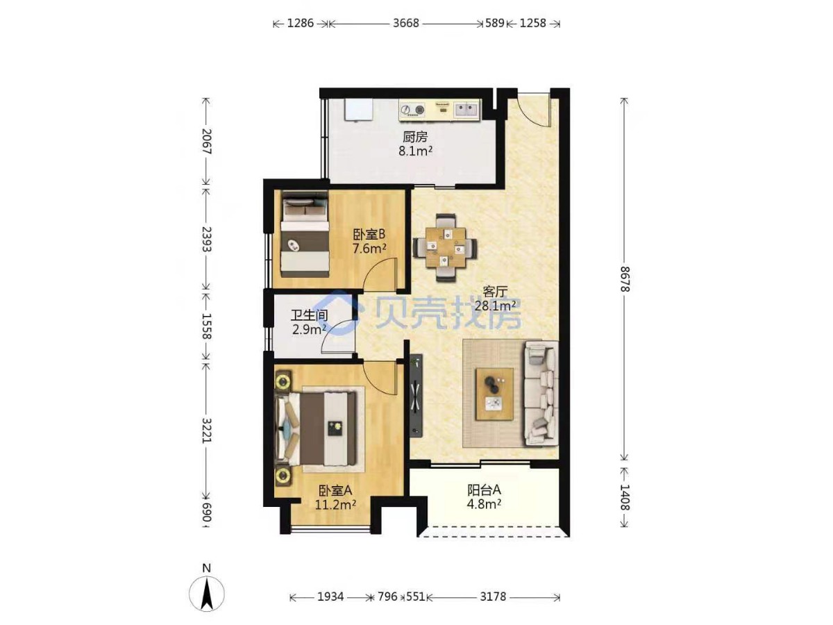 50平户型图和实图展现:
