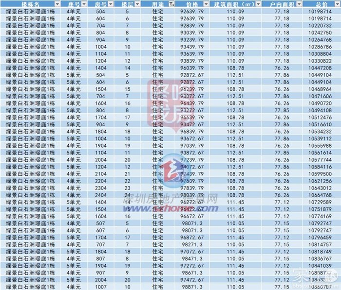 部分住宅单位备案价格展示