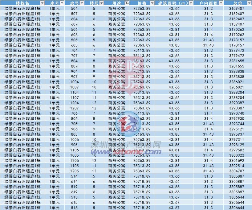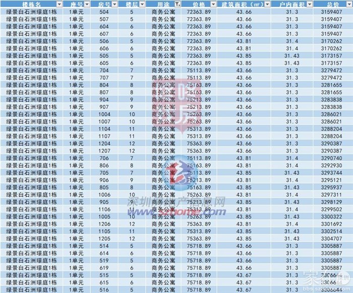 部分公寓备案价格展示
