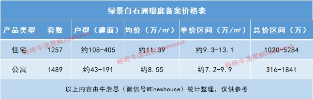 其中住宅1257套,户型区间约108-405㎡,备案均价约11.39万/㎡,单价区间约9.3-13.1万/㎡,总价区间约1020-5284万/套;