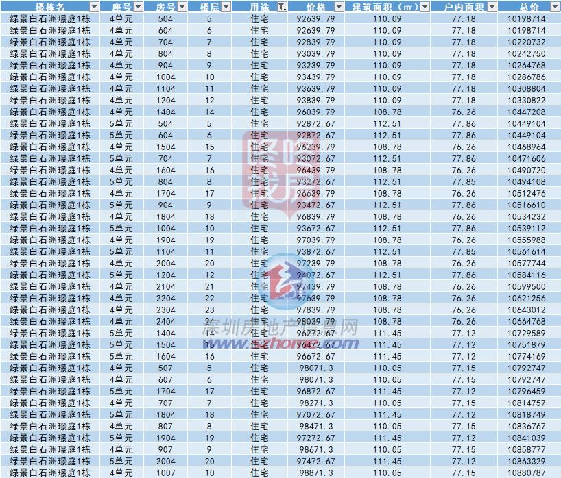 绿景白石洲璟庭位于南山区沙河街道深南大道以北、香山西街以南,日前已获批预售,预售总面积257088.92㎡,预售总套数2746套, 包含住宅和商务公寓,位于1栋一单元、二单元、三单元、四单元、五单元。