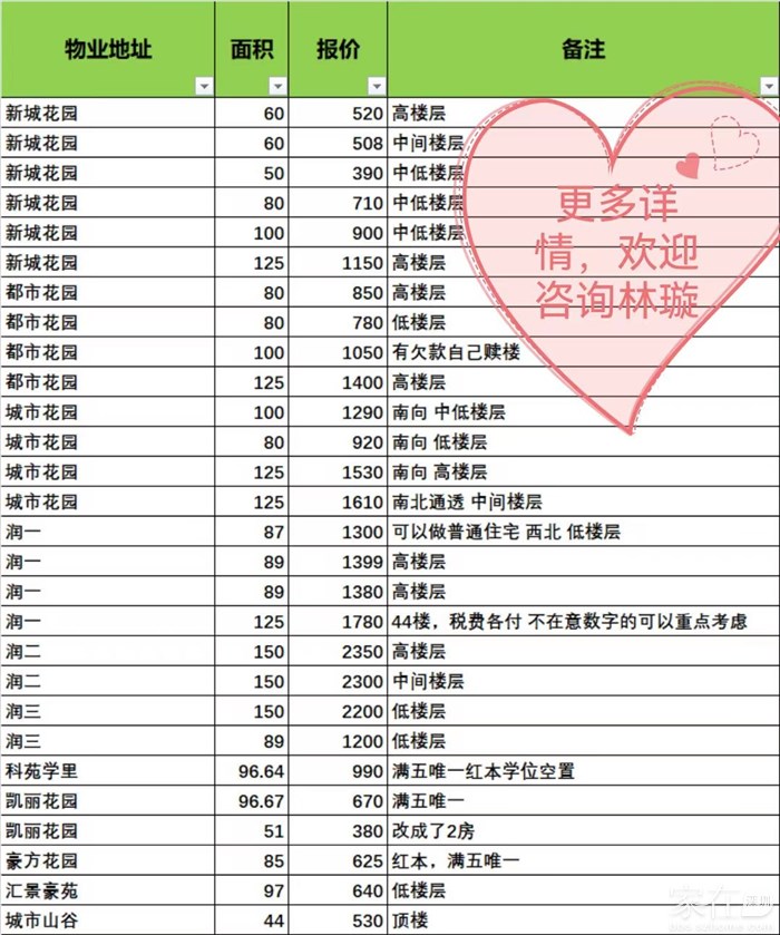 【个人】真实房源,南山科技园笋盘汇总清单 润府 城市花园 都市花园 新城花园 超级笋盘汇总表