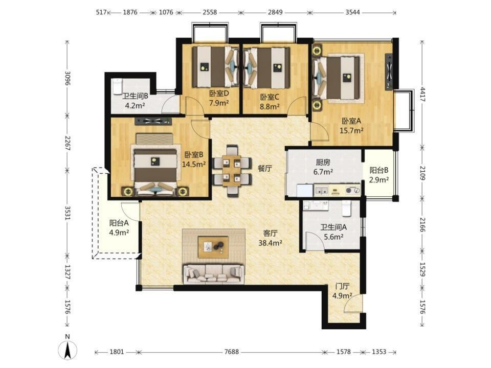 【中介】高档小区 圆龙园,方正四房二厅二卫,诚售中,业主急卖,价格超实惠。