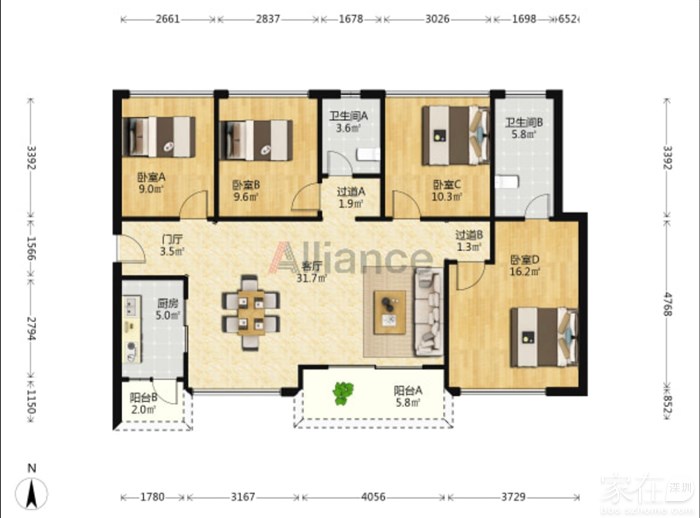 户型设计合理,互相干扰小,空间利用充分具有良好的居住舒适度。