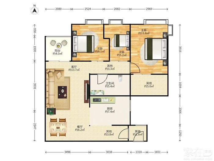 【户型】:3房2厅2卫