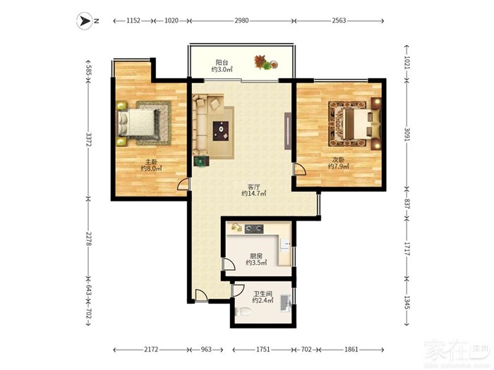 【户型介绍】2003年建成的两居室,户型南北通透,朝向良好,利用空间大,餐厅客厅可分离,精装修,楼层好。电梯 ,生活便利。