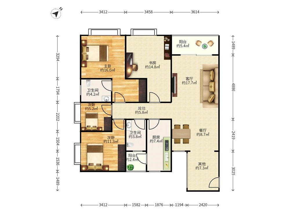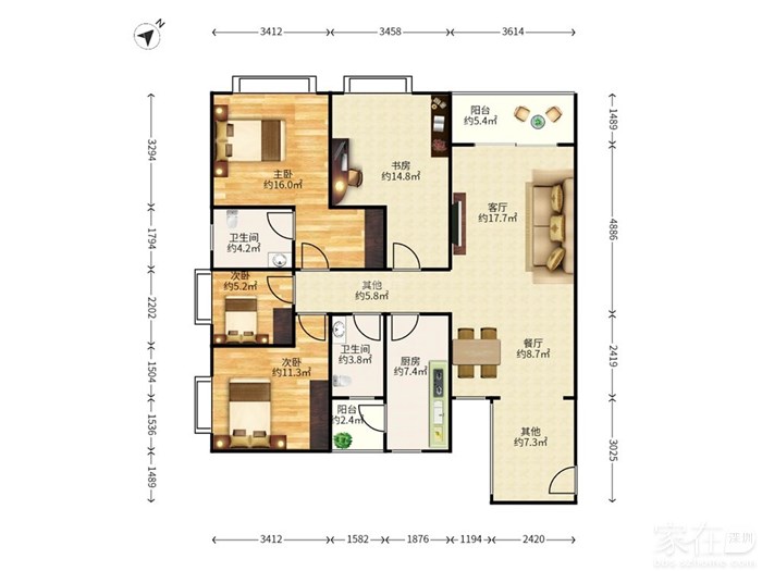 装修描述 业主全程参与房屋设计,对套内面积做到了z大化的实用率