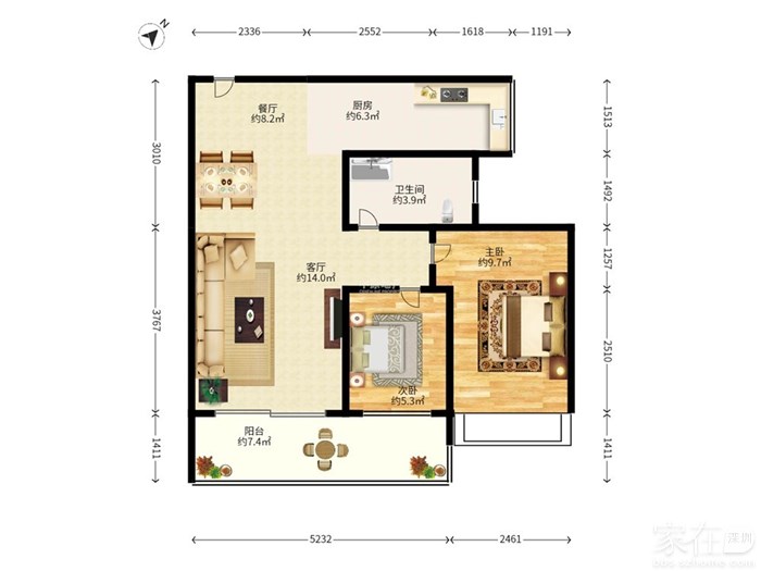 2.户型方正,中间楼层朝北安静,视野无遮挡。