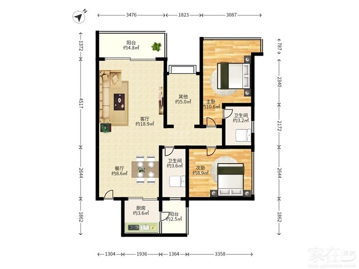 2.此房户型:3室2厅1厨2卫2阳台,朝向:南,格局相当漂亮,卧室和客厅是分离开的,客厅有独立的2个面,特别好摆家具和电器。