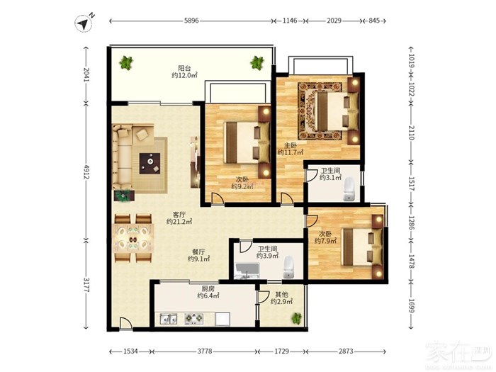 【个人】翠园书包 地铁口 深业东岭 102平3房两厅双卫 只卖500万