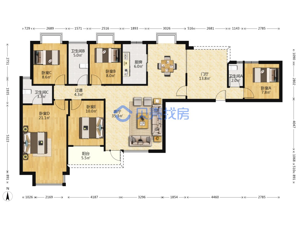 后海!南二外海德中学!电力花园!163平!五房!满五!急售!18xx万!