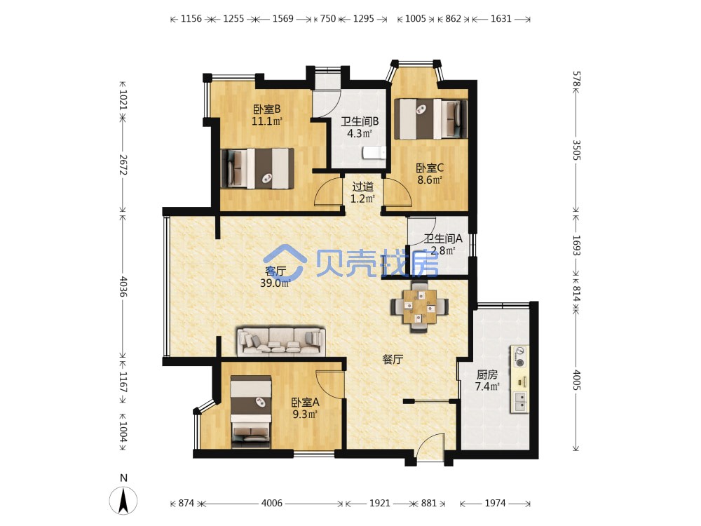 后海!南二外海德中学!海洋之心!103平!满五!送花园!11xx万!配合看房!