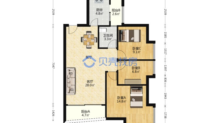 后海!蔚蓝海岸二期!88平!小三房!售!9xx万!
