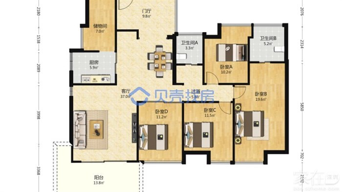 蛇口!澳城一期!134平!满五!五房!售!19xx万!