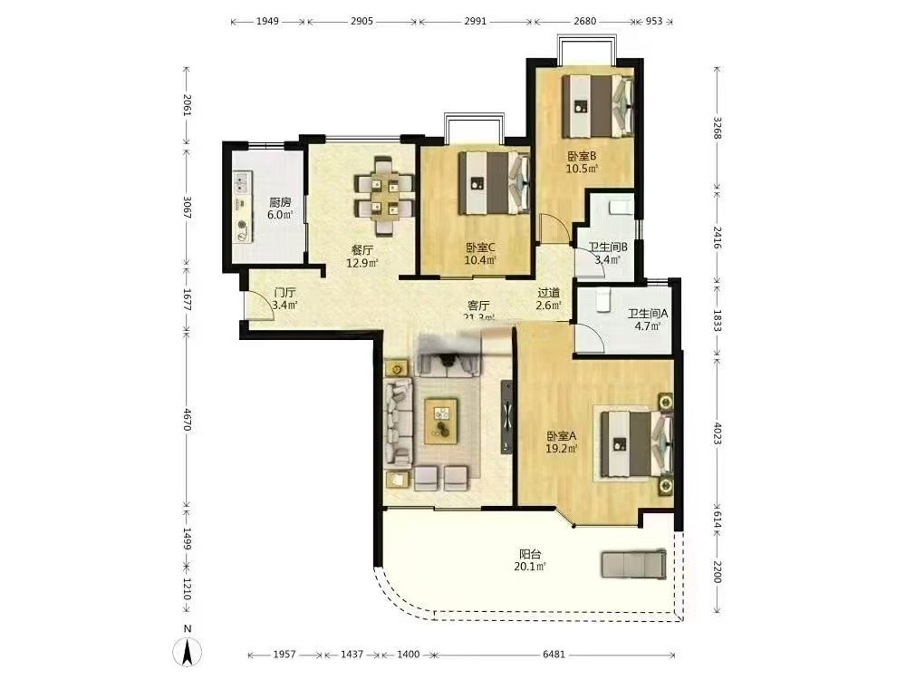 【面积】124平,3房2厅2卫