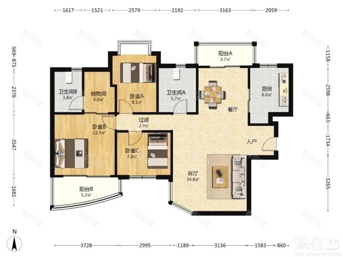 户型:3房2厅2卫