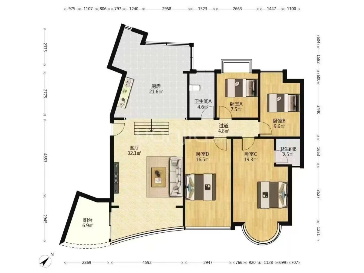 137平方送26平,4+1房2厅,