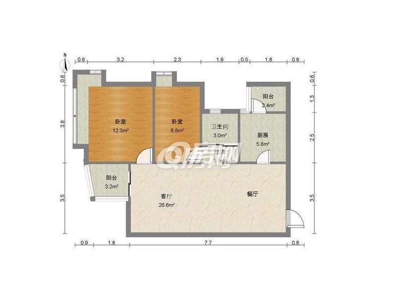 【中介】后海!漾日湾畔!74平!装修不错两房!招租!8800月!已空出!