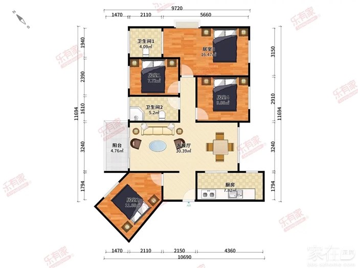 户型:89平米 3房2厅2卫