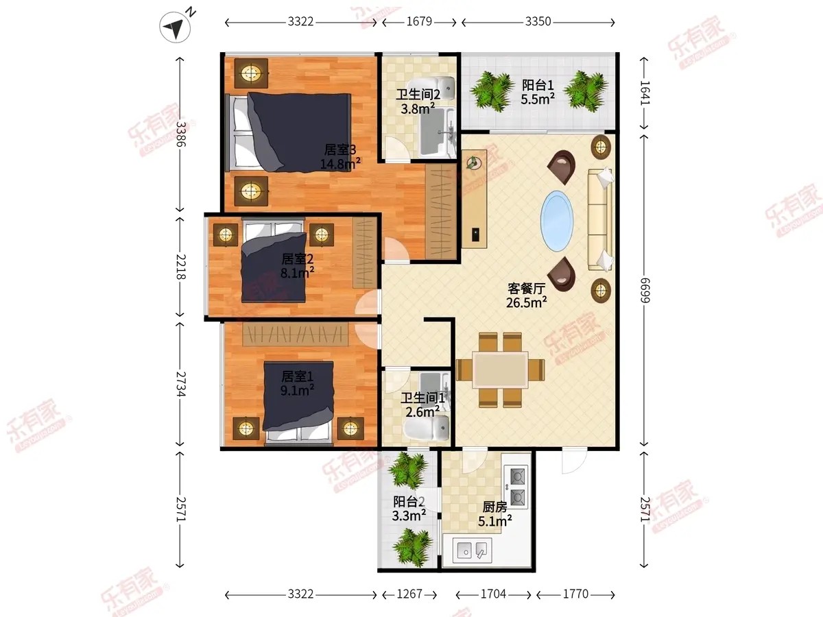 【中介】一号线坪洲地铁口精装大三房客厅出阳台,随时拎包入住