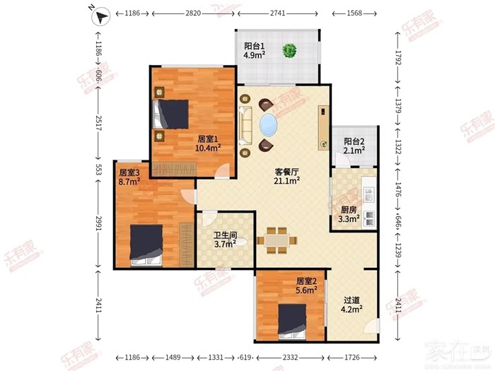 面积:78平米/客厅出大阳台