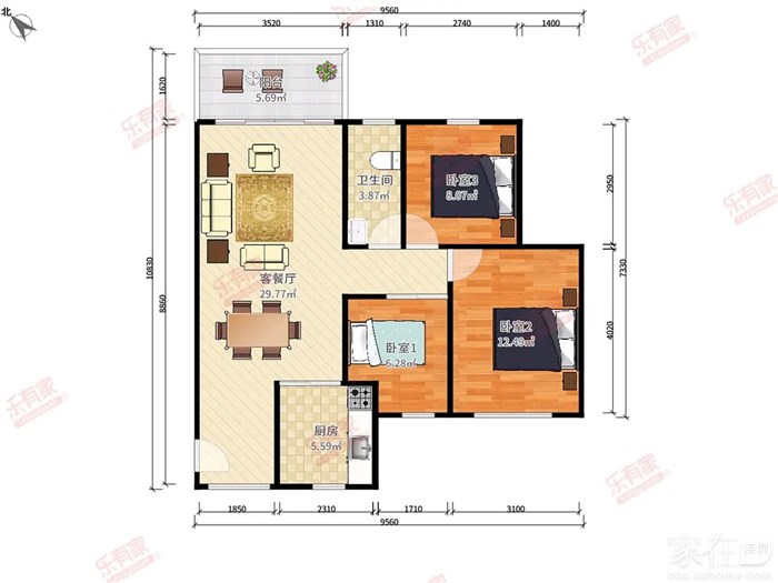 面积:82平米/客厅出大阳台