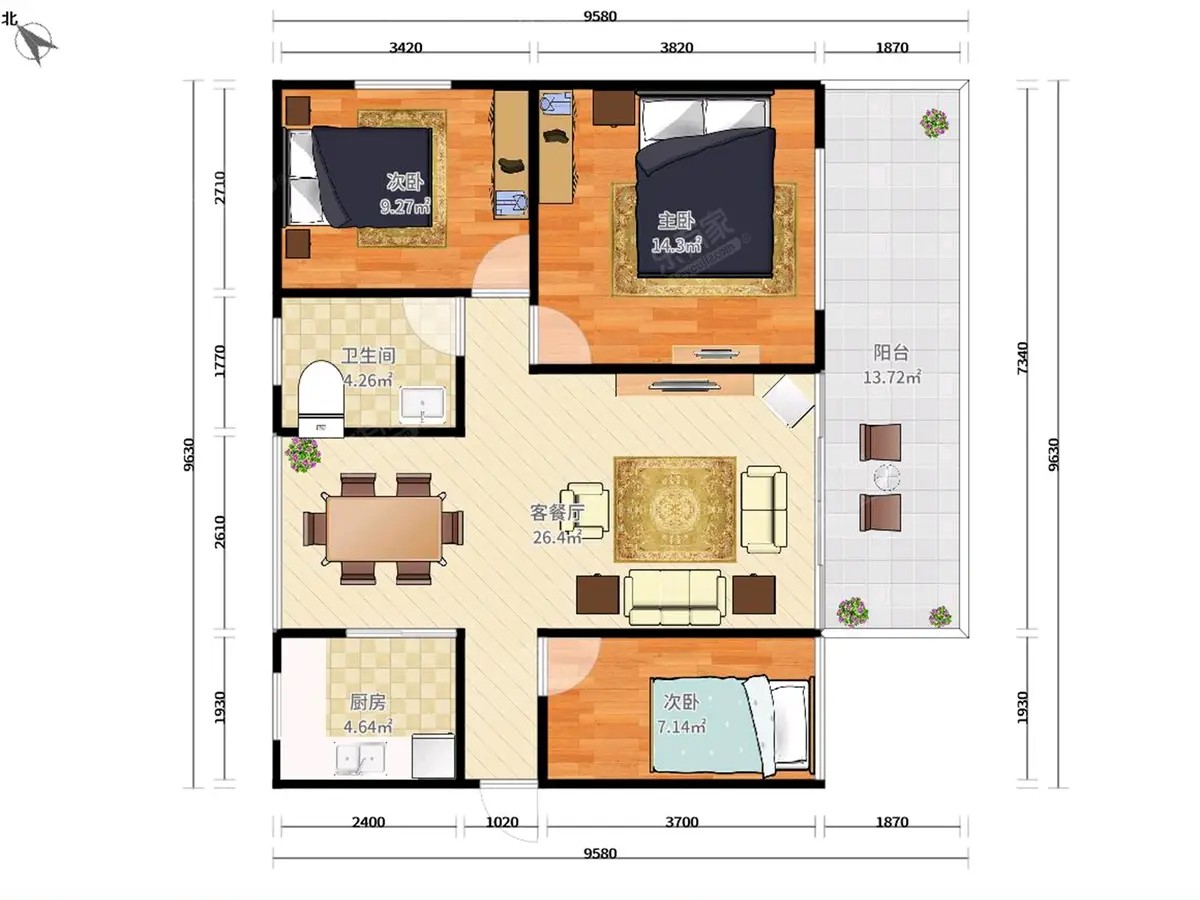 137平 通透户型 大4房2卫