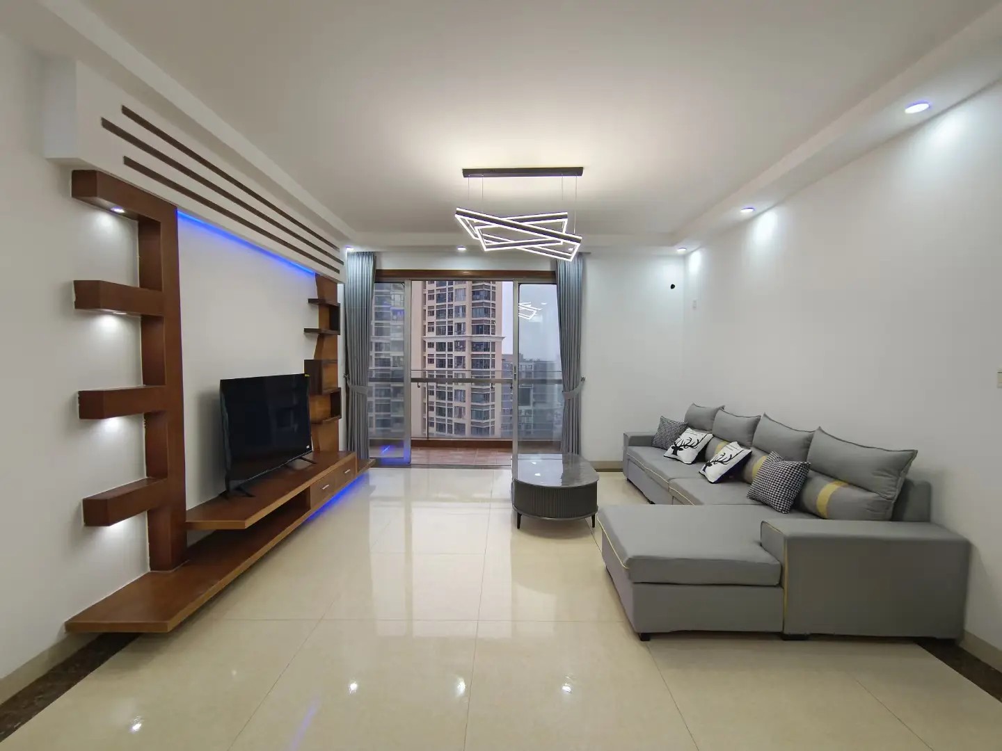 富通城三期全新精装修27楼视野开阔,四房两卫,朝东南看花园,115平全齐全新家私家电,房子已空出,密码看房