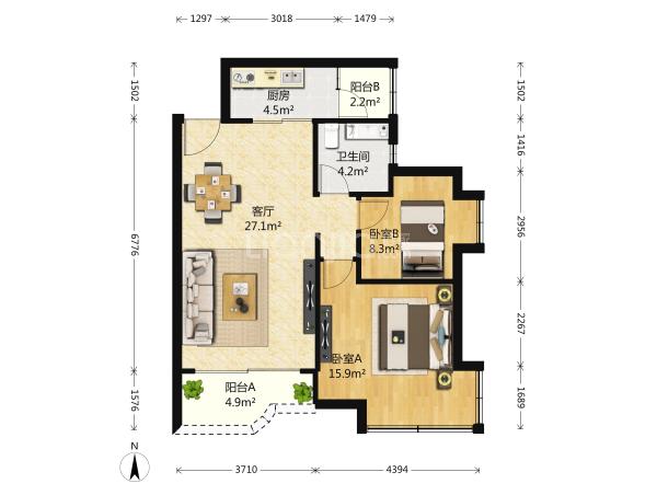 【中介】后海!海岸城旁!观海台!82平!招租!9500月!已空出!