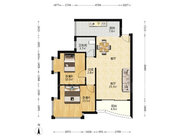 【中介】后海!观海台!86平!南向两房!招租!9500!