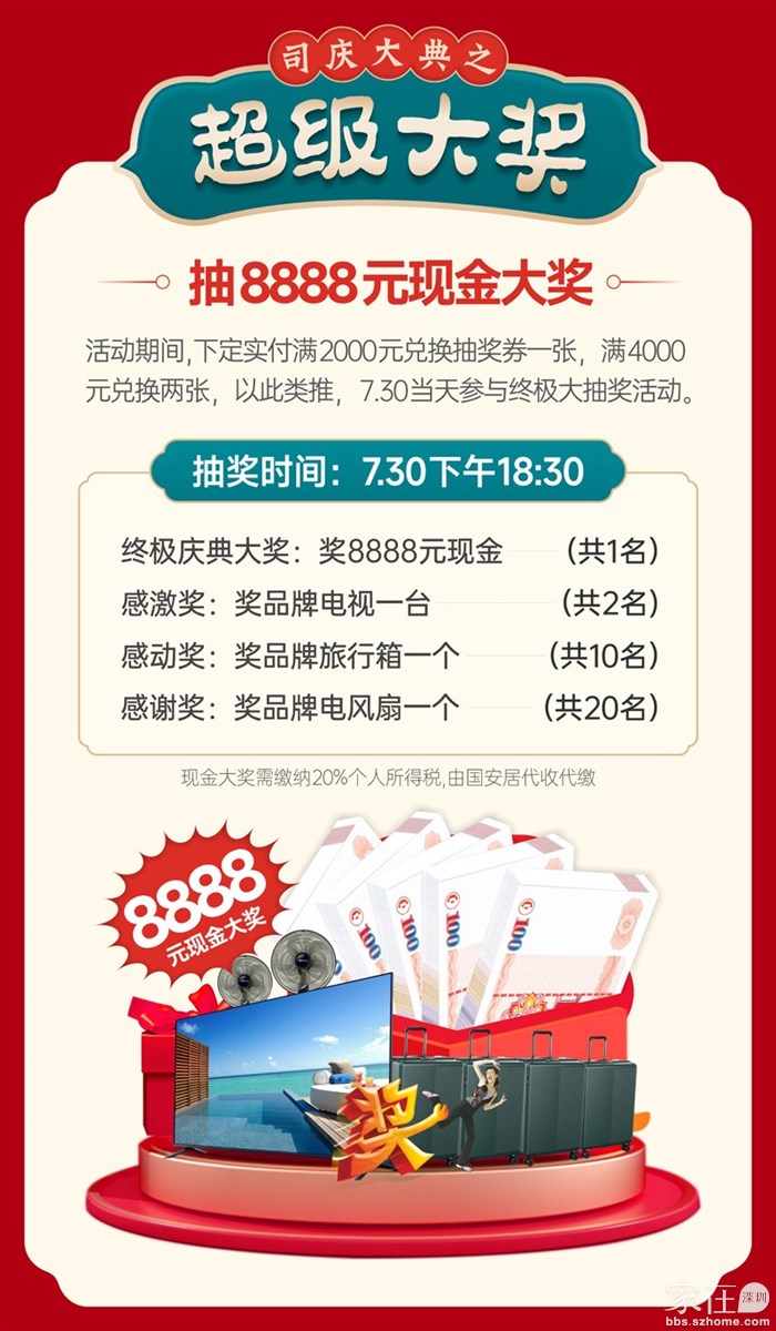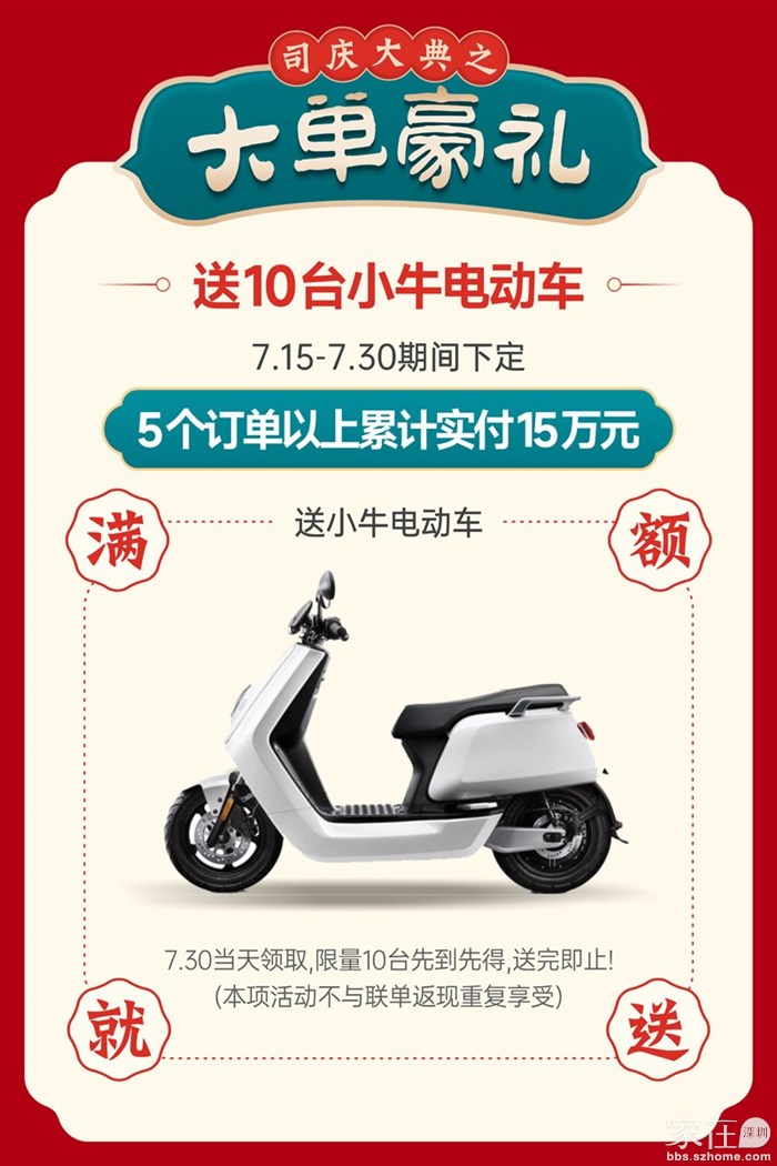 7.15-7.30国安居20周年家装大典, 豪送200台电动车、200万现金、2000台家电!