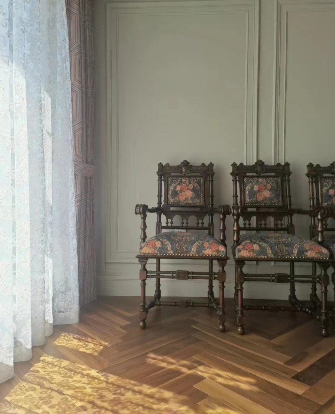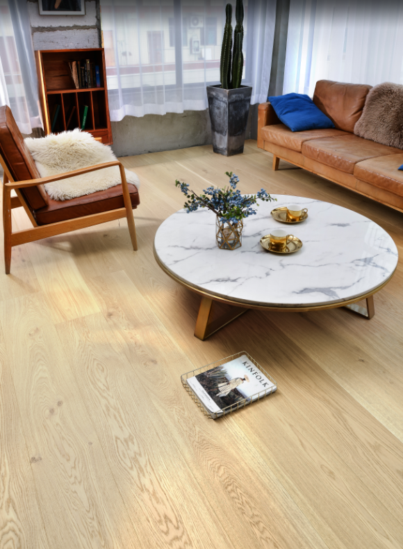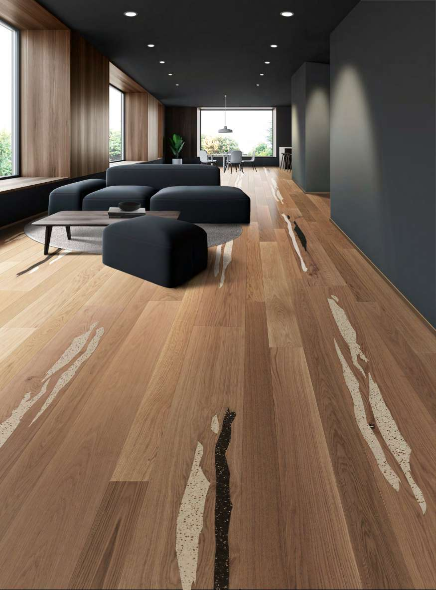 来自欧洲森林深处的十年、几十年甚至更久的原木,经过手工与机器的双重筛选与处理,甄选上乘色彩与品质,从视觉与触觉上为空间带来舒适感。