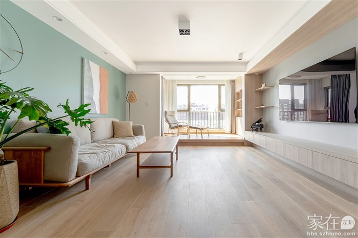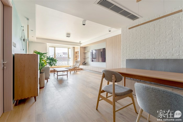 看到这样的客厅给人第一感觉就是干净和温馨,这也是设计之初确立的目标,烟灰木色配上浅色亚麻布料的沙发,就是这样一种养眼的搭配。