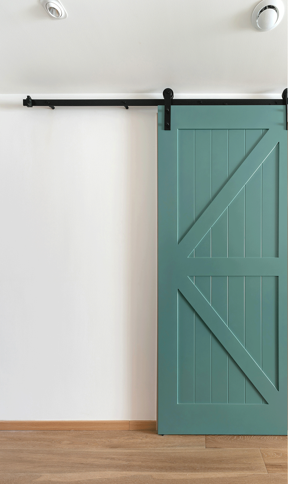 厨房是采用了谷仓门的形式,推开既不占用厨房空间,同时还达到了一定的装饰作用。