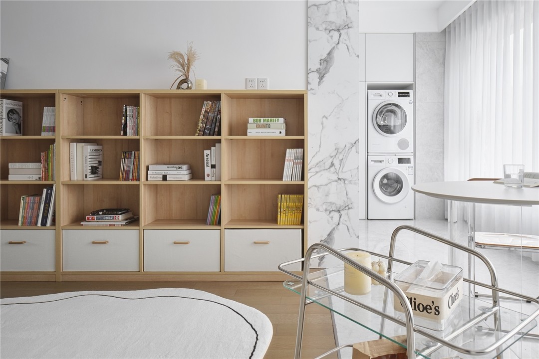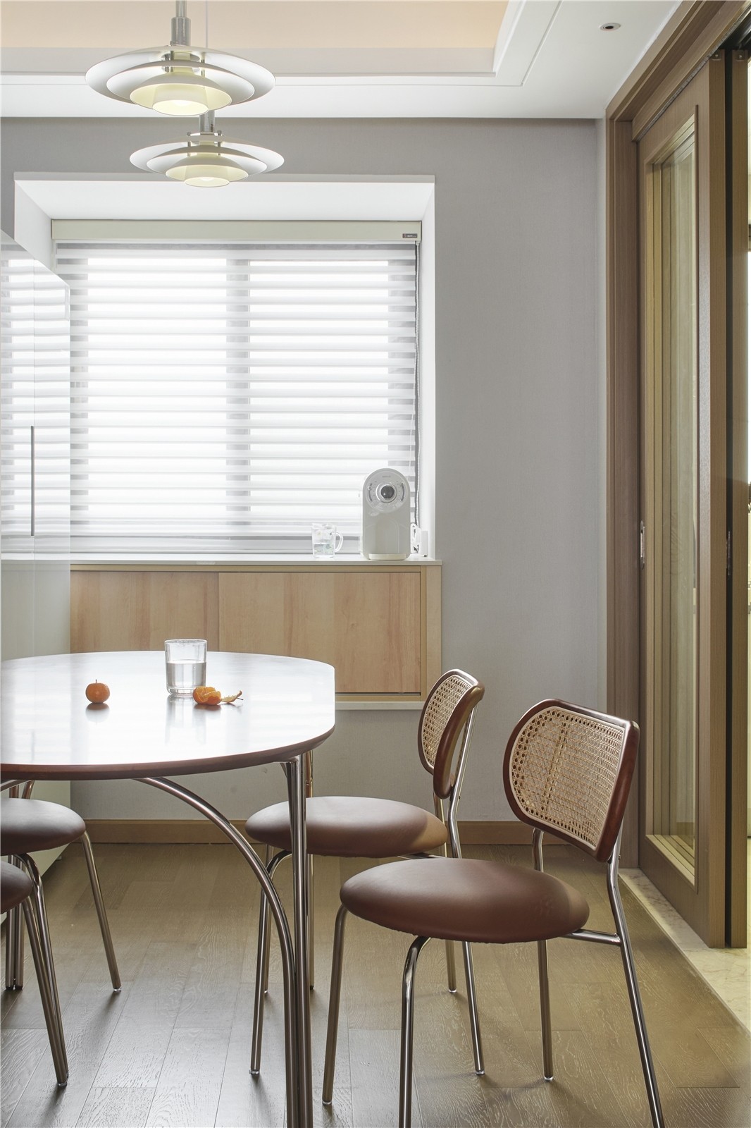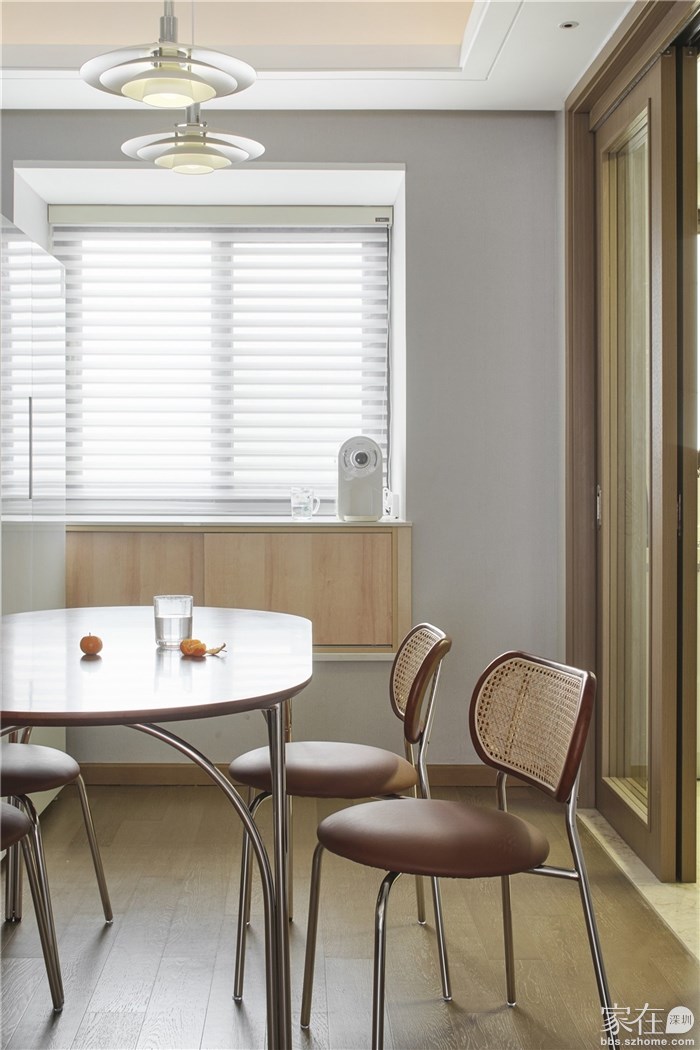 餐厅空间较小,把餐边柜与飘窗结合,节省空间的同时补充功能性和收纳。