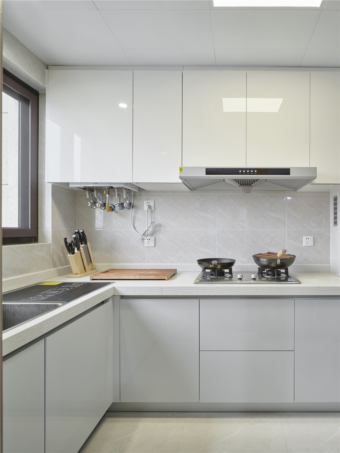 本身精装的厨房,整体颜色还是很干净清爽的,收纳及功能都能满足使用需求,所以未做改动,为节省预算做出了不小的贡献。