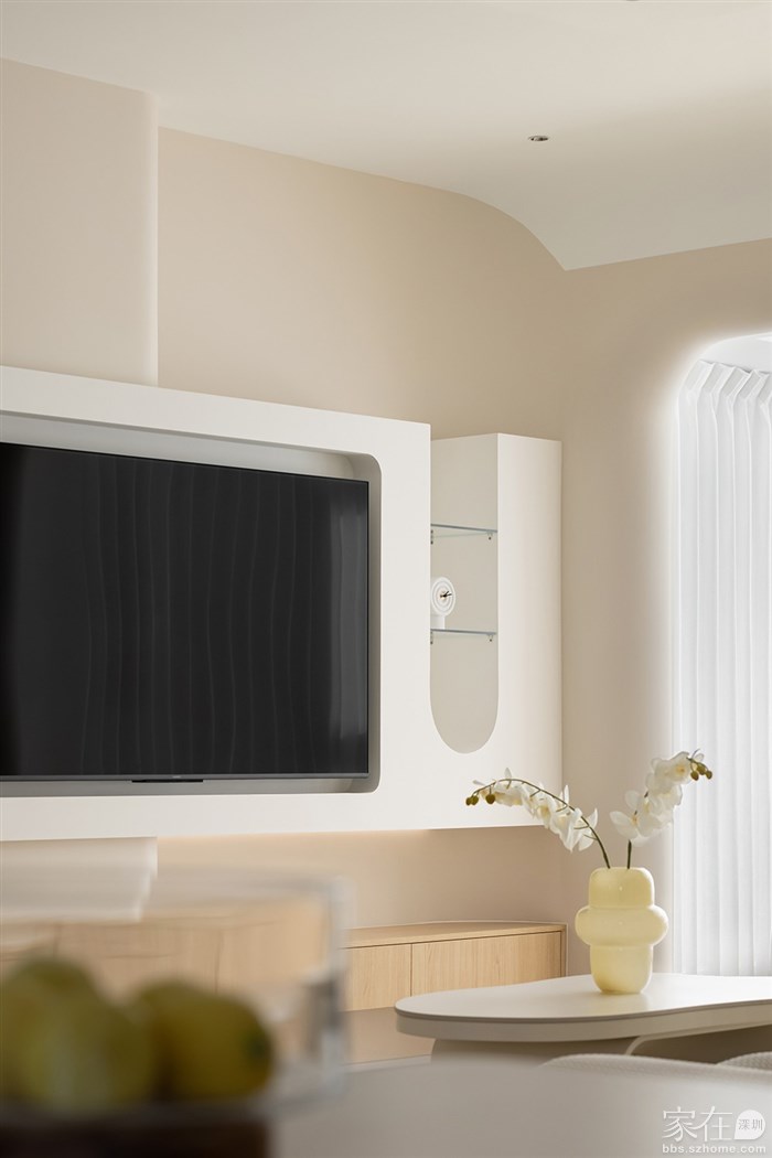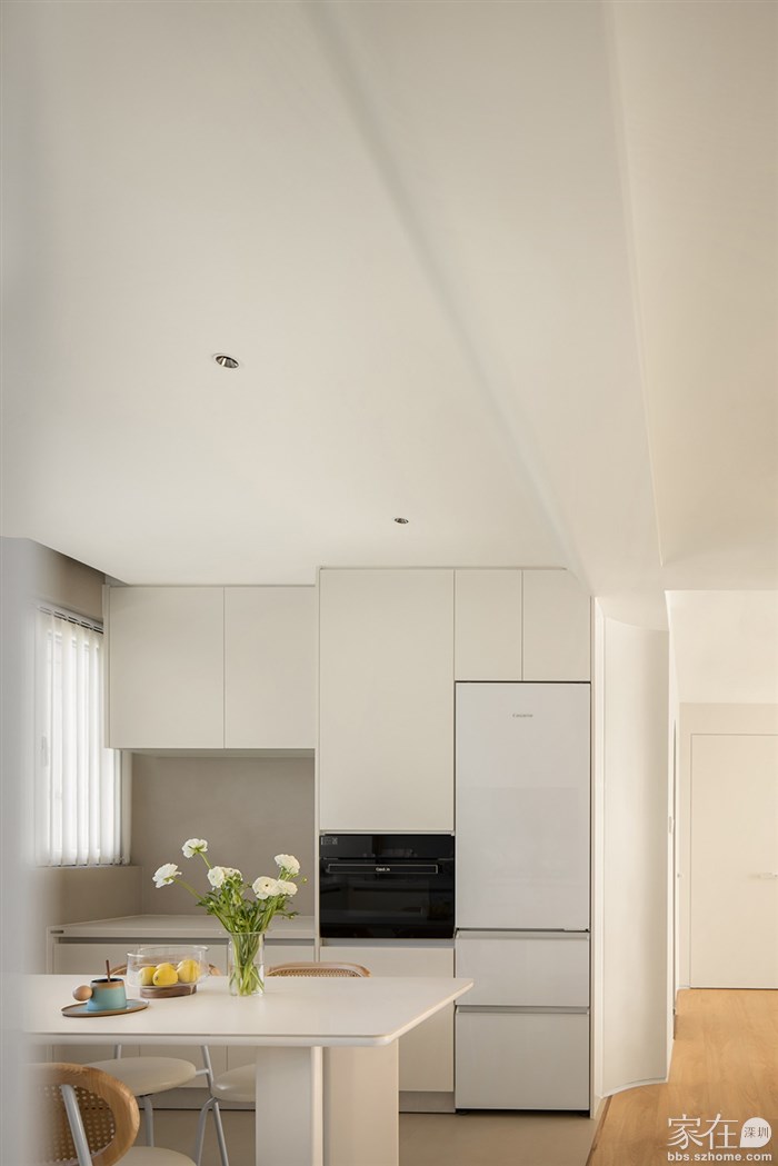 104㎡治愈系奶油调,餐厨一体+弧形元素,胜过撩人春色!