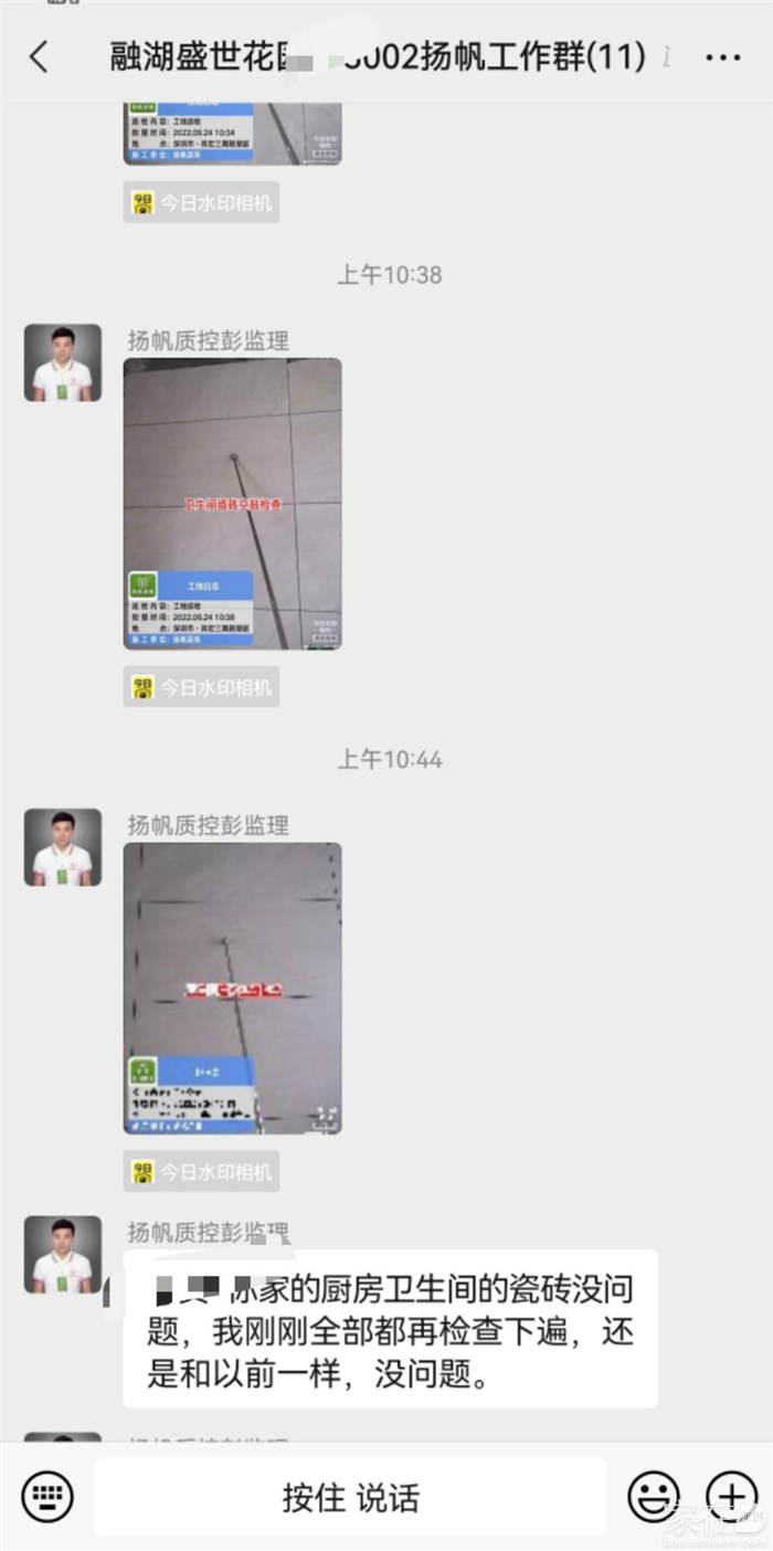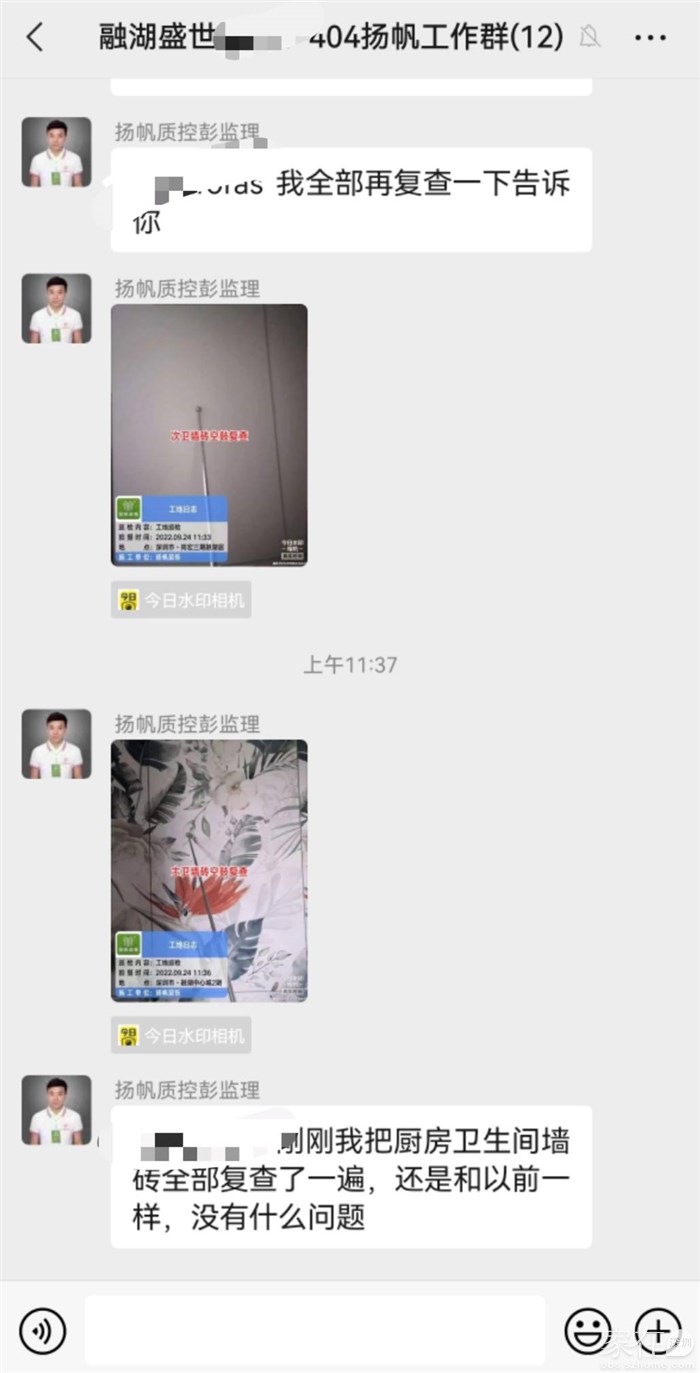 泥木完成,油漆工进场。客户没请第三方监理,我们的监理仔细地检查。