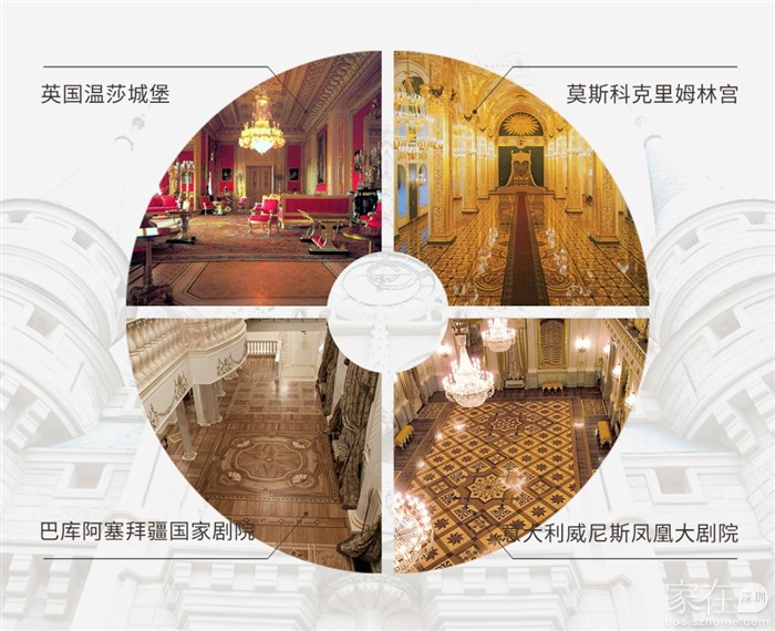 从温莎城堡的荣光开始,Berti的足迹遍布全球顶级地标:俄罗斯克里姆林宫、罗马奎里宫、乌克兰总统府、意大利凤凰大剧院等,都铺设着Berti拼花地板。对豪宅业主而言,选择Berti,便是将欧洲皇室的雍容与历史底蕴,直接铺进自家的生活空间。