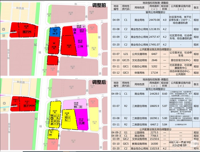 将原法定图则中03-11行政办公用地规划的居委会和社区健康服务中心附设在调整后的03-07留用二类居住用地中(规划3,000平方米社区健康服务中心,社区居委会整合到300平方米社区管理用房),不再独立占地。