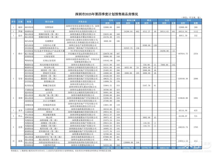 深圳市2025年第四季度计划预售商品房情况。