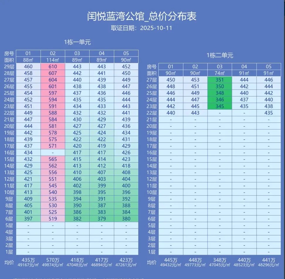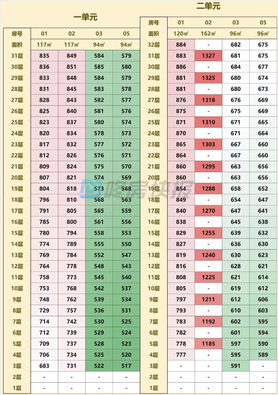 具体户型价格如下: